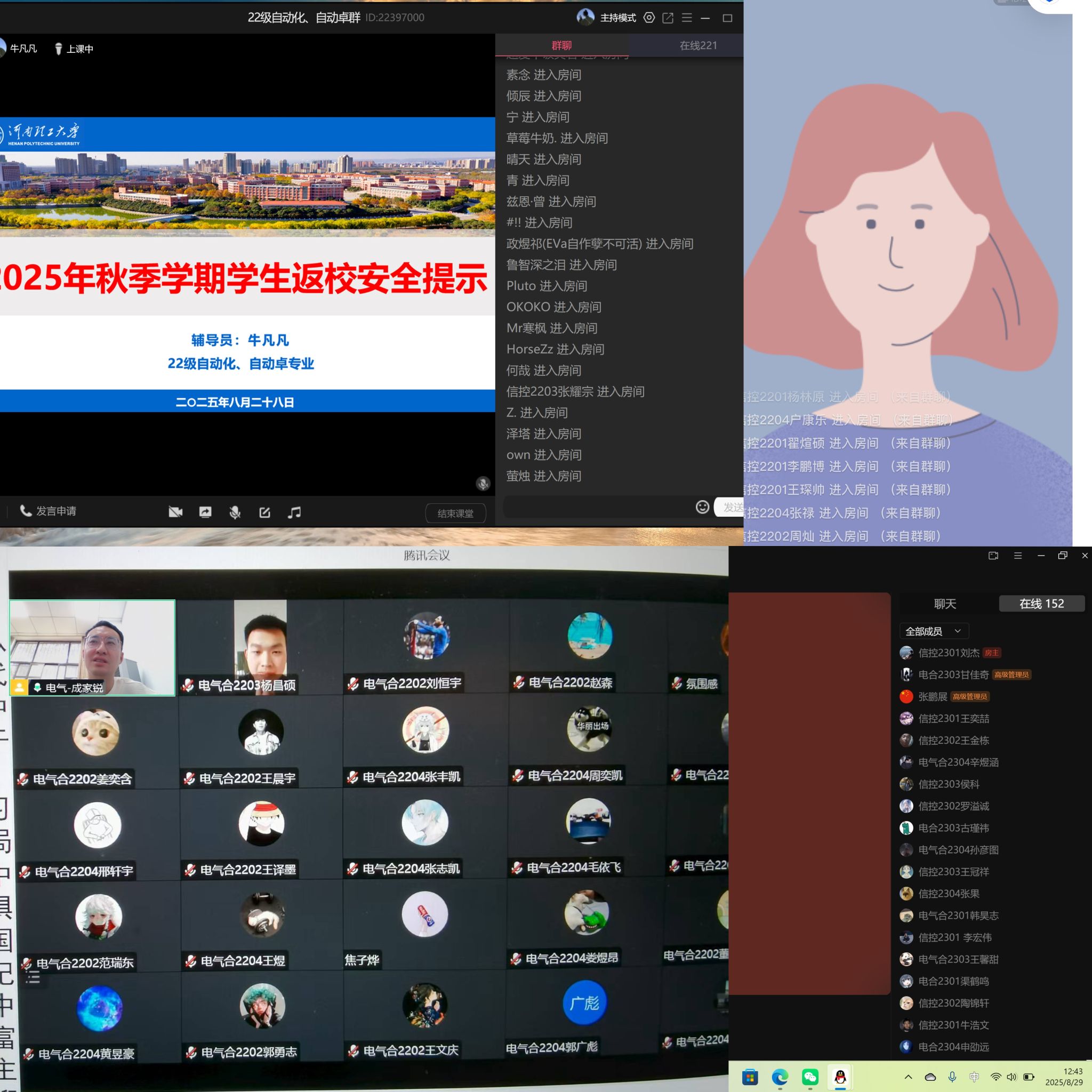 为深入贯彻落实《做爱自拍 关于做好2025年秋季学期开学工作的通知》要求,扎实做好学生教育管理与服务保障工作,确保全体学生平安返校,帮助学生快速调整状态,8月28日-29日,电气做爱自拍 以年级为单位,组织全体学生召开秋季开学线上教育主题班会,为新学期学习生活筑牢基础。